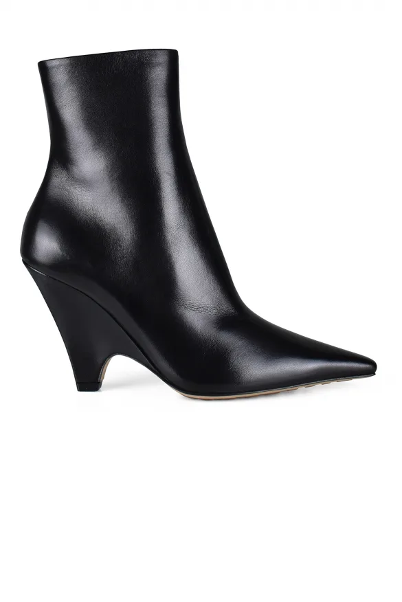 Bottega Veneta laarzen van glad zwart leer.Ritssluiting aan de zijkant.Puntpunt.Iets gesloten hak van 10 cm.Made in Italy.