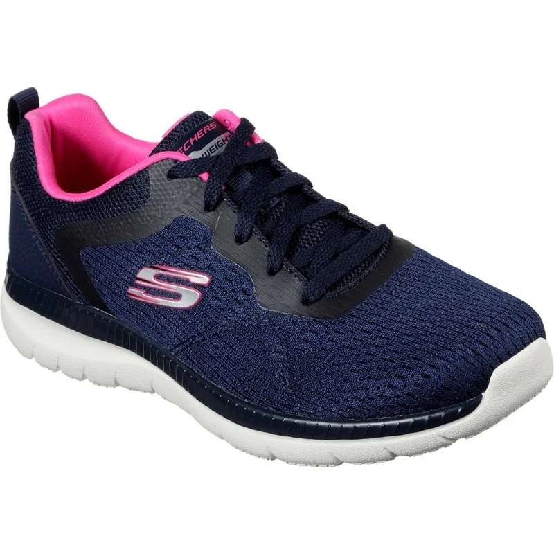 Schoenen Skechers Bountiful Quick Path voor dames, die comfort en stijl combineren met een ademend mesh bovenwerk en een Memory Foam zool. Perfect voor sport en dagelijkse activiteiten.