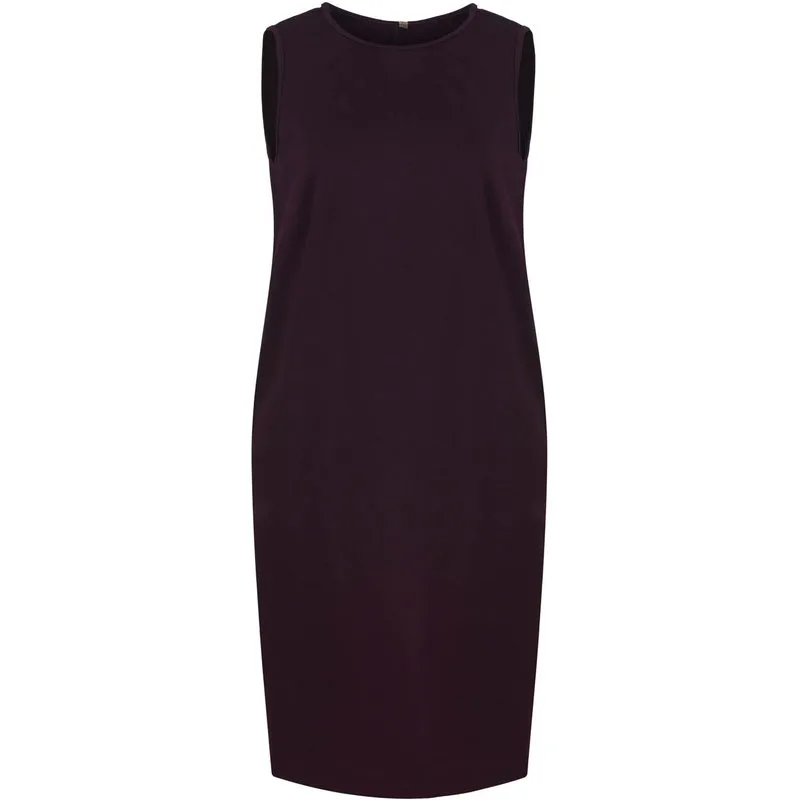 Deze bordeauxrode mouwloze zakjurk is uitgevoerd in Punto di Roma stof. De jurk heeft een ronde halslijn en sluit op de rug met een verborgen ritssluiting, toon op toon. Darts bij de buste zorgen voor een perfecte pasvorm. De jurk heeft twee zijzakken. Ons model is 172cm en draagt maat 36/S. Afmetingen voor maat 36 (in cm): Schouder -34; Borst-42; Taille-40; Onderkant-51; Lichaamslengte-86.