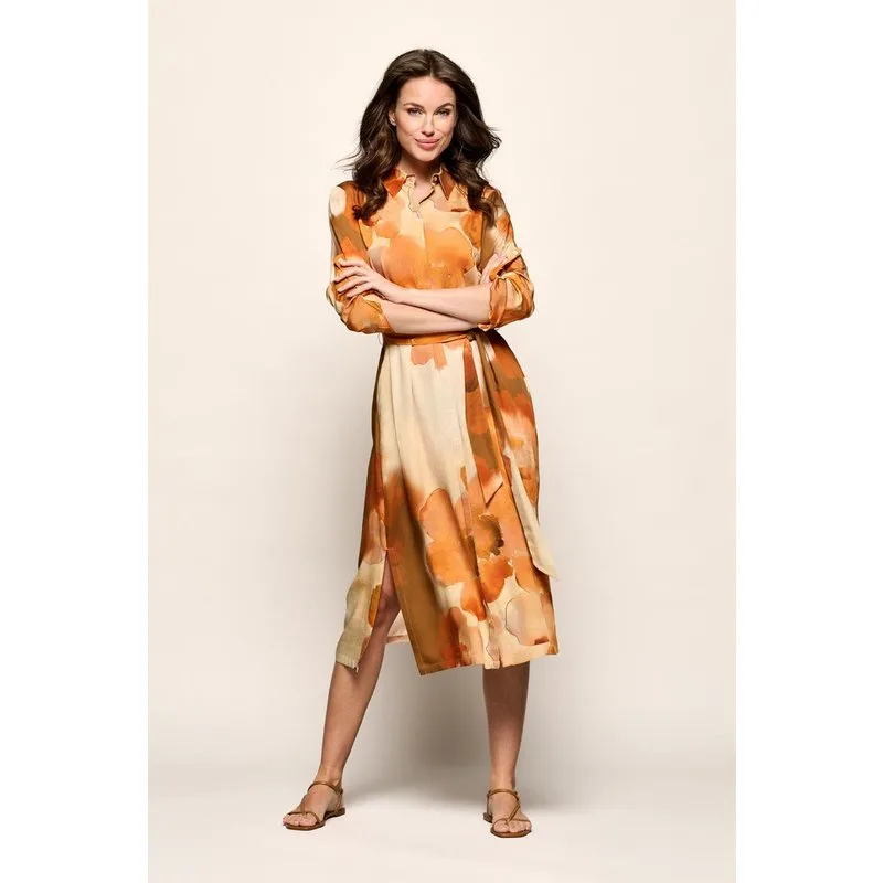 Bowie printjurk – zomers, stijlvol en comfortabelOp zoek naar een jurk die moeiteloos stijl en comfort combineert? De Bowie printjurk van Mart Visser is de perfecte keuze. Deze multicolor doorknoopjurk met praktische steekzakken valt soepel om het lichaam en combineert een krachtig abstract dessin met een flatterende pasvorm. De warme terracotta- en oranjetinten van de print geven de jurk een eigentijdse, vrouwelijke uitstraling. Gemaakt van 100% viscose, voelt de stof licht, zacht en ademend aan op de huid. De soepele valling zorgt voor een comfortabel draaggevoel, terwijl de lengte net boven de knie de jurk veelzijdig maakt – ideaal voor zowel werk als vrije tijd.