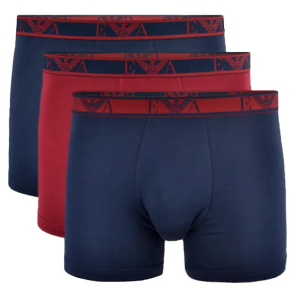 Emporio Armani boxershorts, set van 3, Unlimited Logo, heren, rood, katoen. Authentieke casual kleding van Emporio Armani - streetwear/sportkleding design van Emporio Armani - Emporio Armani herenmode, perfect voor dagelijks gebruik - Deze rode Emporio Armani boxershorts passen perfect bij de rest van je garderobe - comfortabele katoenen stof - klassiek - Set van 3, Unlimited Logo -