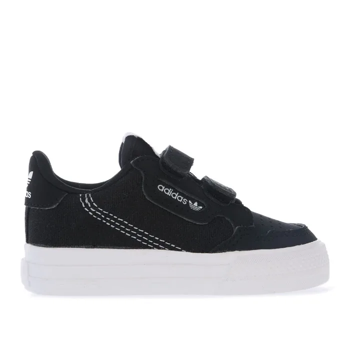 Infant adidas Originals Continental Vulc Trainers in black- white.- Textile upper.- Velcro closure.- Mesh tongue with woven linear Trefoil brand tab.- Contrast heel patch with printed Trefoil logo.- Rubber sole.- Textile upper Textile lining Synthetic sole.- Ref: EG9101I