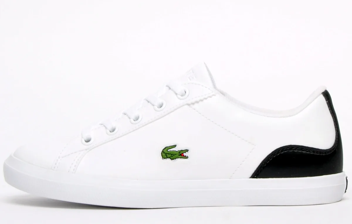 Childrens Lacoste Lerond Trainers in white black.- Synthetic upper.- Lace up fastening.- Embroidered Lacoste lettered branding at tongue.- Embroidered crocodile to side.- Breathable piqué linings.- Rubber outsole.- Synthetic upper Textile lining Synthetic sole.- Ref: 740CUC0013147