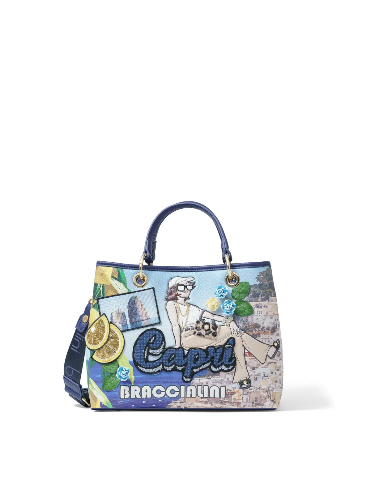 Braccialini Handtas 'Pomona' blauw / geel / groen / wit