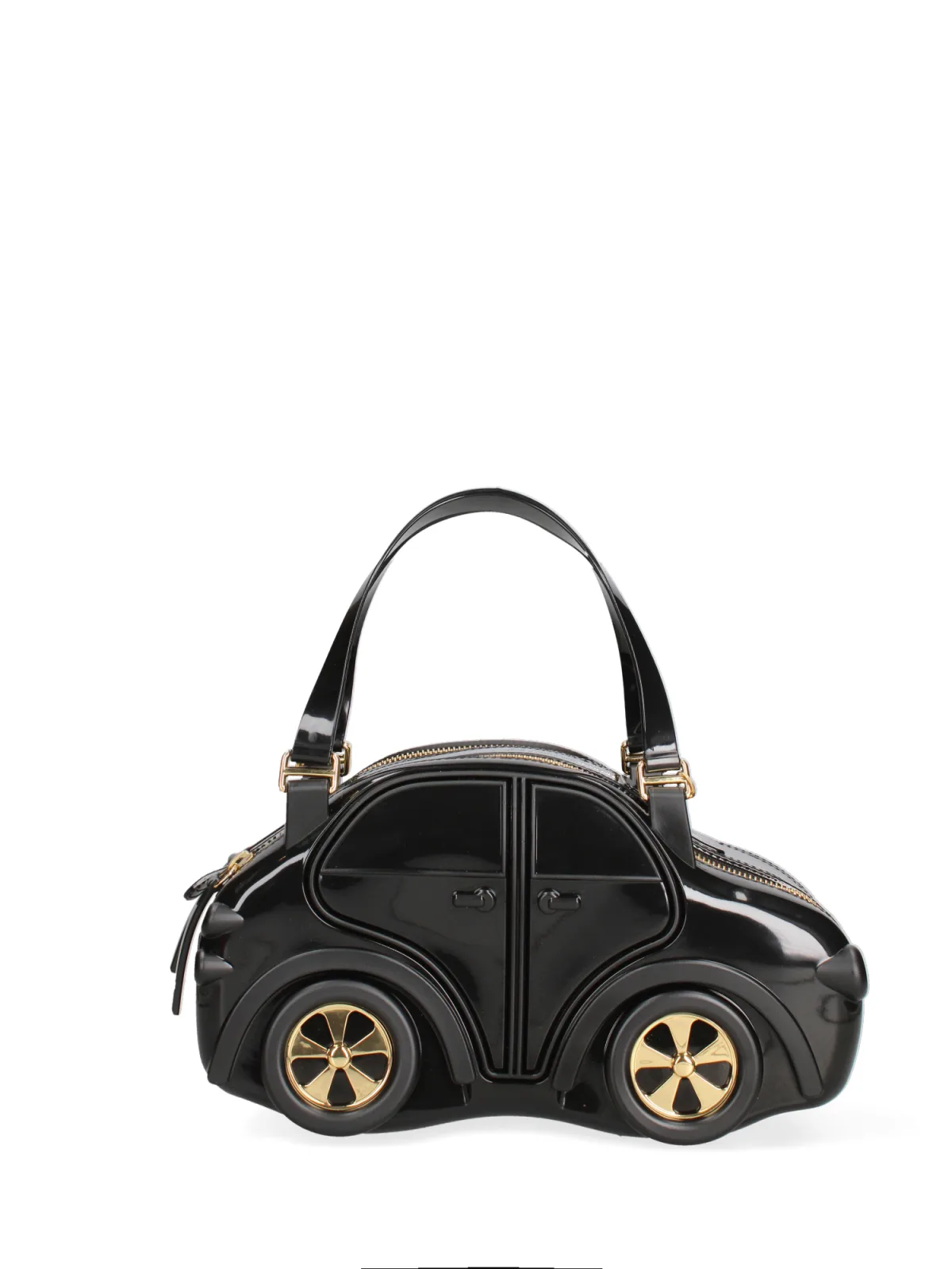 Dameshandtas met ritssluiting. ontbrekende binnenzakken. afwezige externe zakken. verstelbare en afneembare schouderband. in pvc-handvat. een binnencompartiment. extern materiaal. PVC interieur. Afmetingen: 28x16x11 cm. Gemaakt in Italië