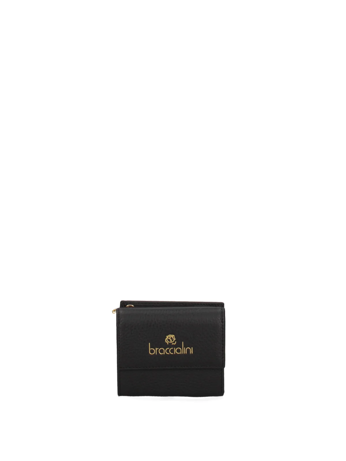 Damesportemonnee met drukknoopsluiting. binnenzakken voor kaarthouder en bankbiljettenhouder. één achterkant met externe zakken met ritssluiting. ontbrekende schouderband. ontbrekend handvat. een binnencompartiment. extern materiaal. 100% polyurethaan binnenkant. Afmetingen: 11x8,5x4 cm. Gemaakt in Italië