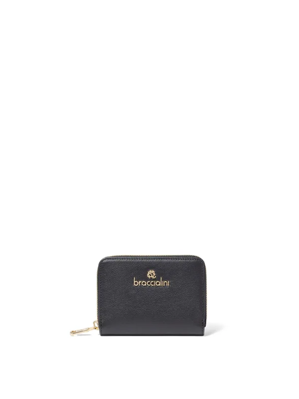 Damesportemonnee met ritssluiting. kaarthouder en één met binnenzakken met ritssluiting. afwezige externe zakken. ontbrekende schouderband. ontbrekend handvat. een binnencompartiment. extern materiaal. 100% polyurethaan binnenkant. Afmetingen: 13x9,5x2,5 cm. Gemaakt in Italië