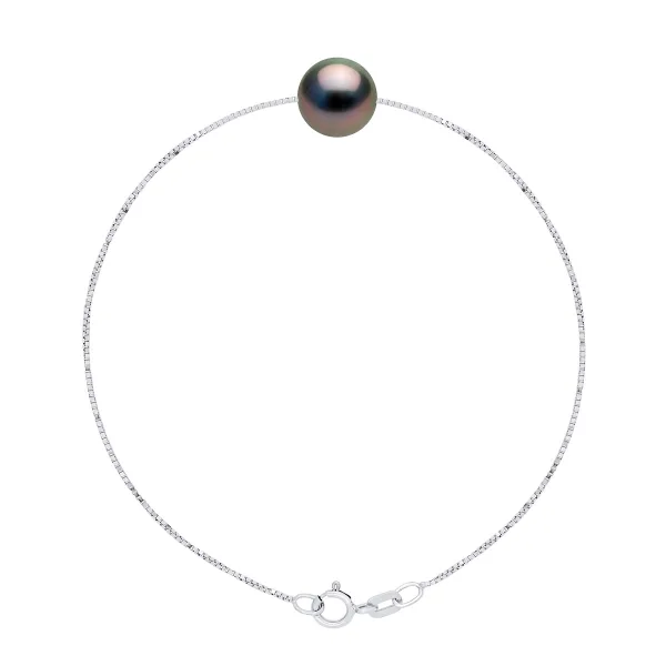 Armband Echte Gecultiveerde TAHITI Parel Rond 9-10 mm - Kettinkje 'Venetiaans' van Zilver 925 Rhodium gecoat - Lengte 18 cm - Geleverd met Certificaat van Echtheid en Internationale Garantie - GEMAAKT IN FRANKRIJK