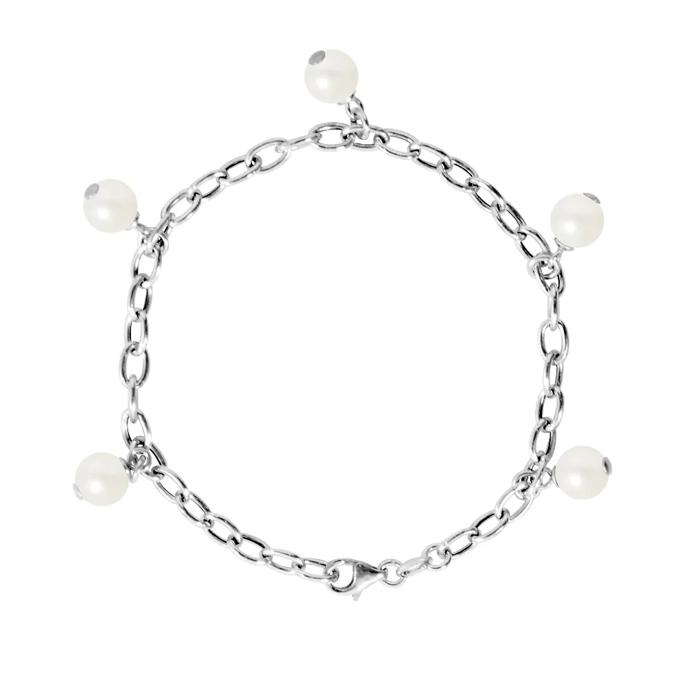 Armband - Ronde zoetwatercultuur kralen 7 - 8 mm - wit - zilver 925 duizendsten - witte kristallen bedels - verstelbare lengte van 14 tot 18 cm - 2 jaar garantie tegen eventuele fabricagefouten - al onze juwelen bewijs van liefde Bent u in een doos geleverd met een certificaat van authenticiteit en een internationale garantie.