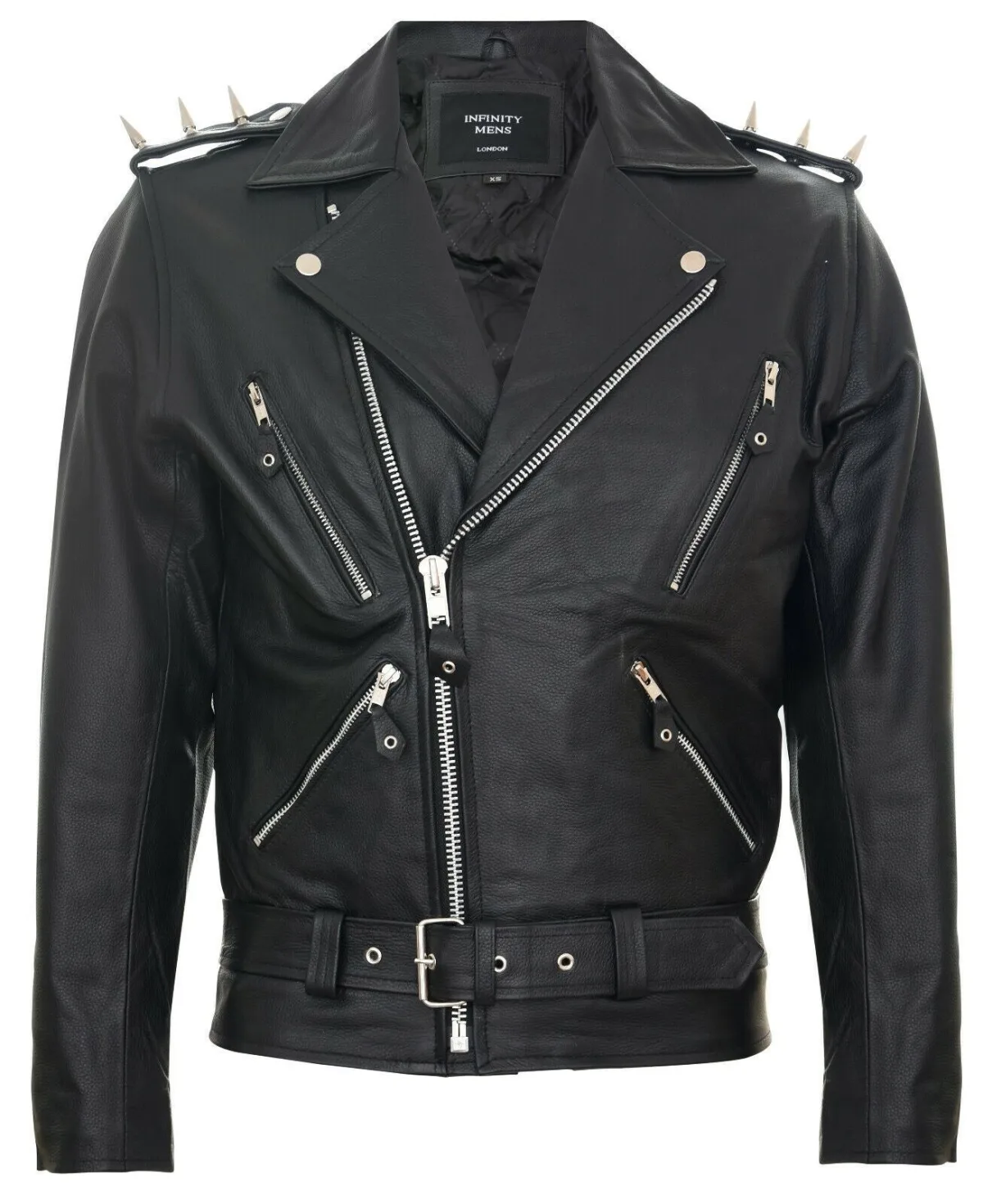 Brando zwart leren bikerjack met 'Ghostrider'-spijkers