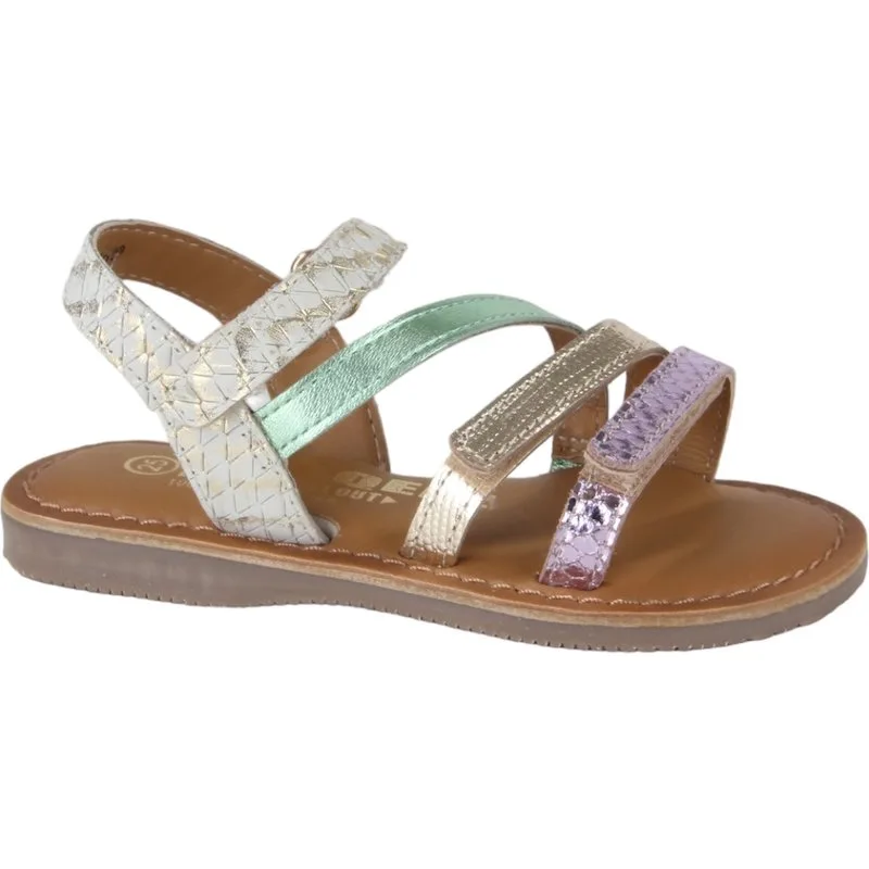 Braqeez 424012-959 Meisjes Sandalen - Beige/Groen/Paars - Leer - Klittenband