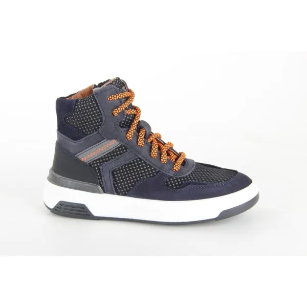 Braqeez 423944529 Jongens Hoge Sneakers BlauwOranjeBlauw Nubuck Veters
