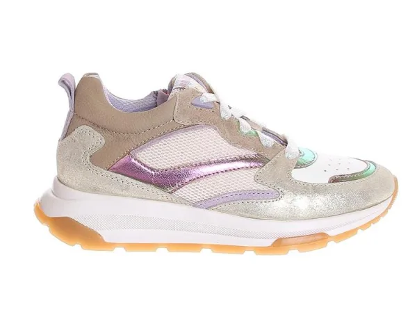 Braqeez 425250-994 Meisjes Lage Sneakers – Beige/Paars/Wit – Nubuck – Veters Prijzen