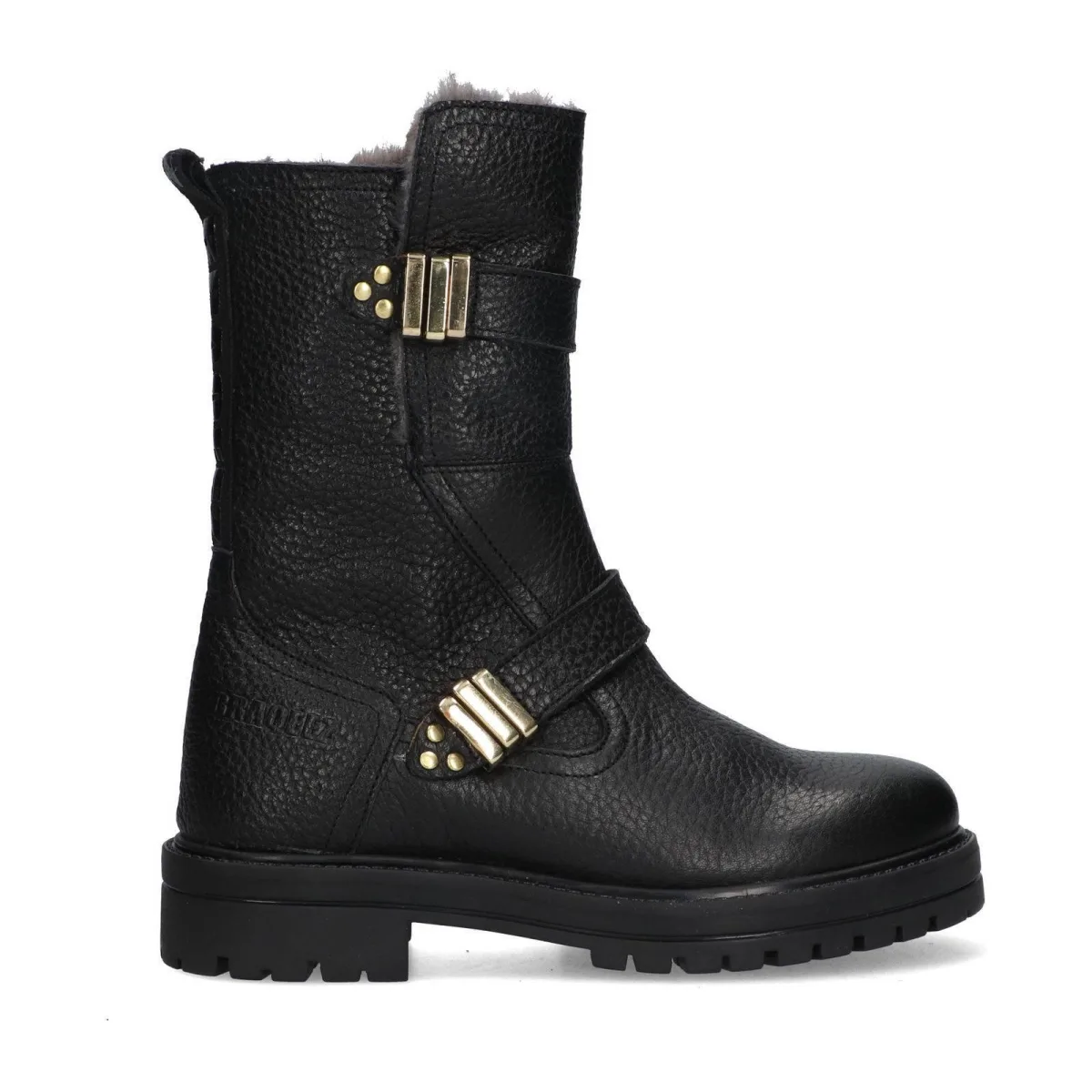 Braqeez Lola Leap gevoerde leren bikerboots zwart