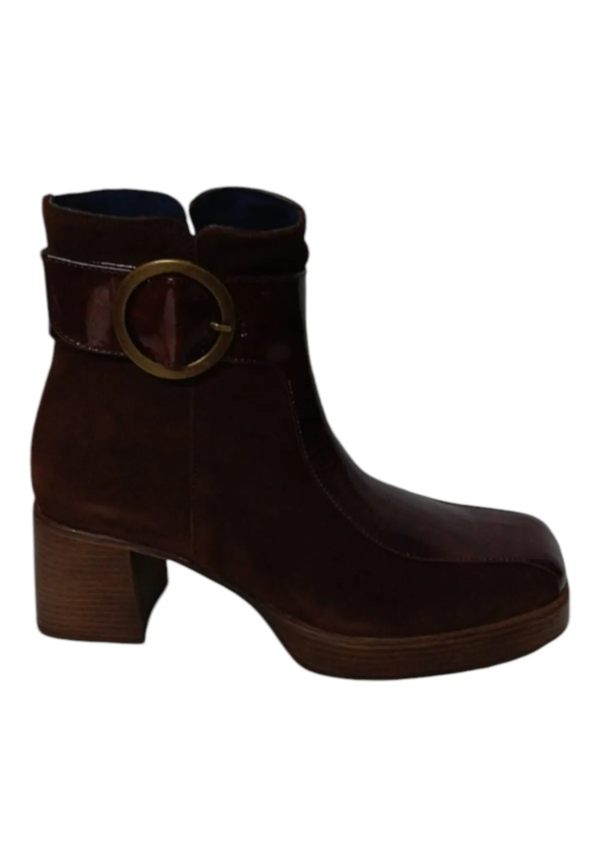 Plateau-Stiefelette mit Schnallenverschluss am Schaft, bequemer Sohle und rutschfester Absatzsohle