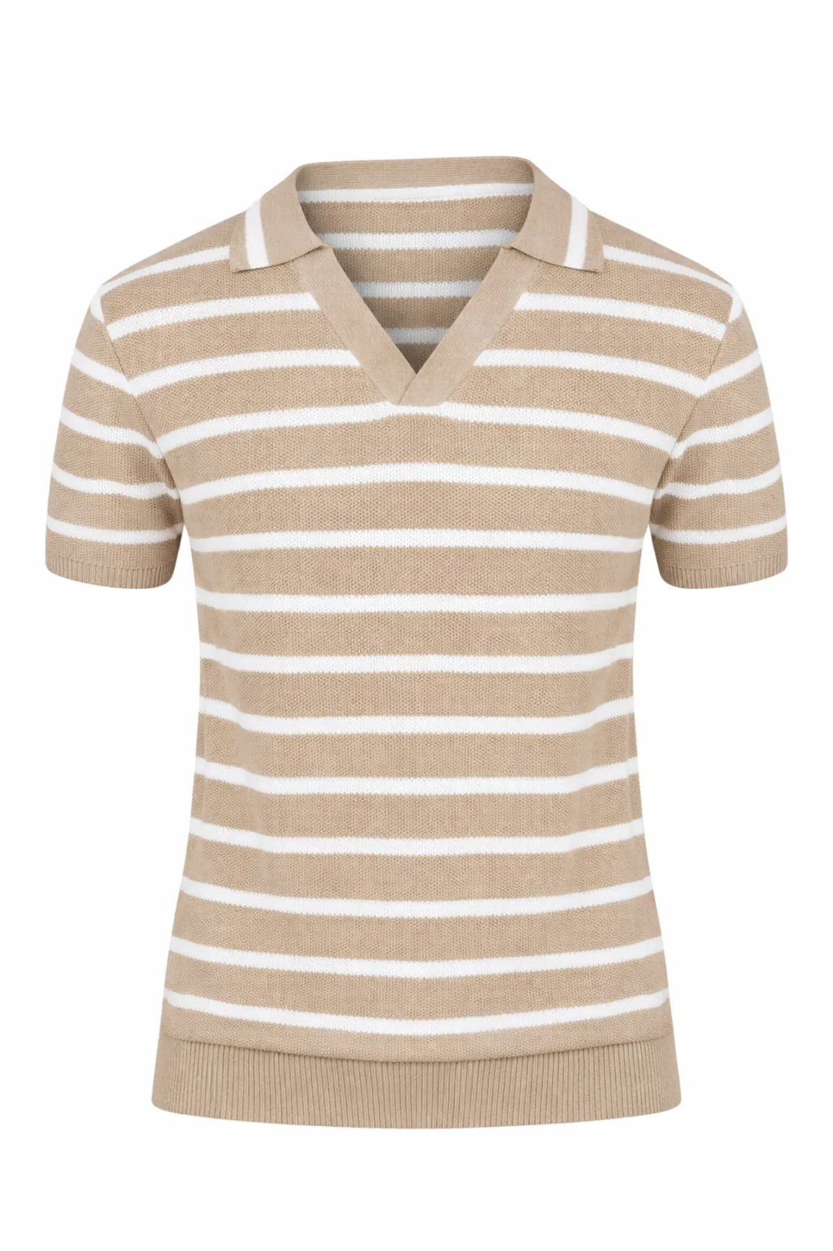 Design: Geribbelde kraag, Geribd ceintuurtje; Materiaal: Knitwear; Halstype: Polokraag; Motief: Gestreept; Extra's: Fully fashioned; Pasvorm: Normale pasvorm; Armlengte: Kwartmouw