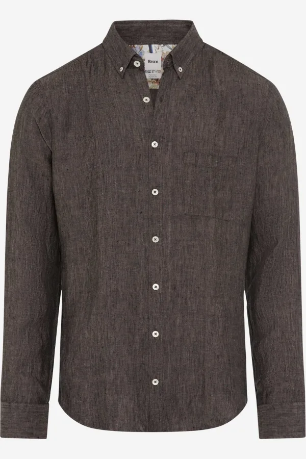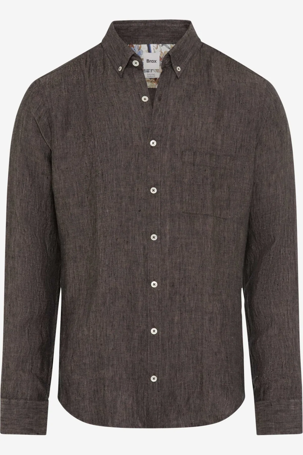 Brax Linnen Overhemd bruin, Effen Prijzen