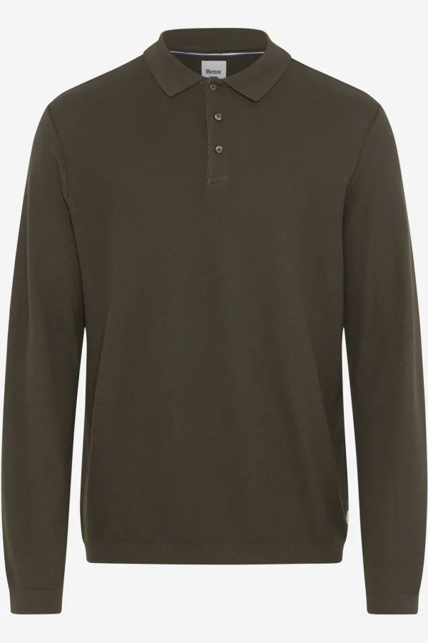 Brax Poloshirt lange mouw olijfgroen, Effen Prijzen