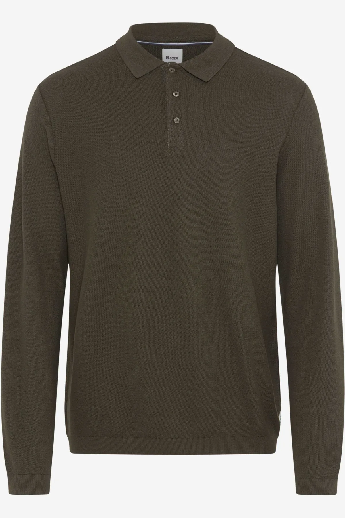 Brax Poloshirt lange mouw olijfgroen, Effen