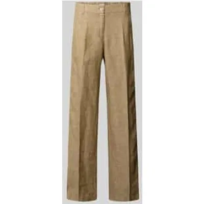 Dames linnen broek van Brax;Model 'Maine';look: mêlee;Pasvorm: regular fit;Applicatie: galonstrepen;Details: effectgaren, riemlussen;Sluiting: knoop en verborgen ritssluiting;Zakken: zij- steekzakken, achterzakken;Materiaal: puur linnen
