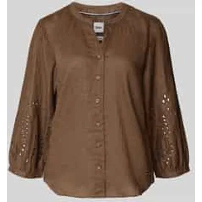 Dames Overhemdblouse von BRAX;Model ‘Velia’;look: effen;Pasvorm: regular fit;kraagmodel: tuniek;Applicatie: Labelapplicatie;Details: ajourwerk;hals: V-hals;Sluiting: enkelrijige knoopsluiting;Mouwvorm: lange mouw;Materiaalverwerking: gevlamd garen;Materiaal: puur linnen