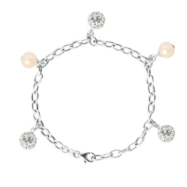 Armband - Ronde zoetwatercultuur kralen 8 - 9 mm - roze - zilver 925 duizendsten - witte kristallen belloques - verstelbare lengte 14 tot 18 cm - 2 jaar garantie tegen alle fabricagefouten - al onze juwelen bewijs van liefde Bent u in een doos geleverd met een Certificaat van authenticiteit en een internationale garantie.