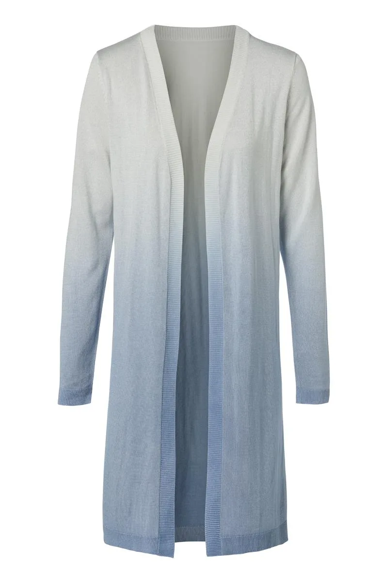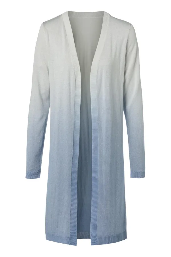 Het Brian degrade vest van Mart Visser is een stijlvol en soepelvallend kledingstuk waarmee je je outfit moeiteloos kunt completeren. Dit gebreide vest is vervaardigd uit een soepelvallende viscose kwaliteit, voelt ultrazacht en vrouwelijk aan, heeft een luxueuze uitstraling en bevat een vleugje glitter door het lurex garen. Het zomerse vest heeft een degradé-effect en is een echte eyecatcher met zijn bijzondere kleurovergang van wit naar lichtblauw. De manchetten, halslijn en zoom onderaan het vest zijn afgewerkt met zachte ribboorden, waardoor het model extra volume krijgt. Met comfortabele lange mouwen en een lengte tot op de knieën is dit heerlijke halflange vest van Mart Visser niet alleen stijlvol, maar ook verrassend zacht en comfortabel. Combineer het degrade vest met de Corbyn degrade top in dezelfde kleur en de witte Manou jeans voor een prachtige totale look. Of draag het Brian vest op de witte Zelina broek voor een elegante uitstraling.