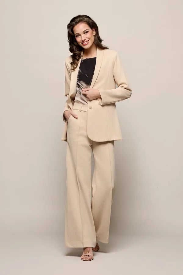Deze crèmekleurige blazer van Mart Visser ademt stijl en verfijning. De elegante snit met lichte taillering en perfecte afwerking maken dit kledingstuk tot een onmisbaar item in je garderobe. De soepele stof met stretch draagt comfortabel en vormt zich mooi naar het lichaam. Met zijn lengte net over de heup en de slank gesneden mouwen heeft deze blazer een flatterend silhouet dat elk figuur siert. De zachte crème kleur geeft een frisse, klassieke look en maakt combineren eenvoudig. Voor een professionele uitstraling draag je de blazer met de Celia pantalon, terwijl hij met jeans en een stijlvolle top moeiteloos een casual chic outfit vormt. De luxe details vallen direct op: een klassieke reverskraag, beklede knopen, gepaspelleerde zakken en zorgvuldig geplaatste deelnaden. De split aan de achterkant en de subtiele splitjes in de mouwzomen geven bewegingsvrijheid en een onderscheidend designerkarakter.
