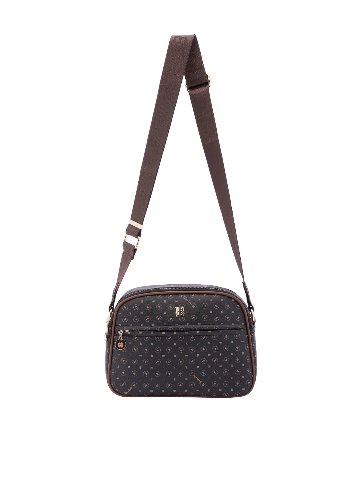 Crossbodytas voor dames met ritssluiting. één met binnenzakken met ritssluiting. één voorkant met ritssluiting en één achterkant met externe zakken met rits. verstelbaar in stoffen schouderband. ontbrekend handvat. twee binnenvakken. extern materiaal. gevoerd met polyester binnenkant. Afmetingen: 19x26x9 cm. Modeproduct