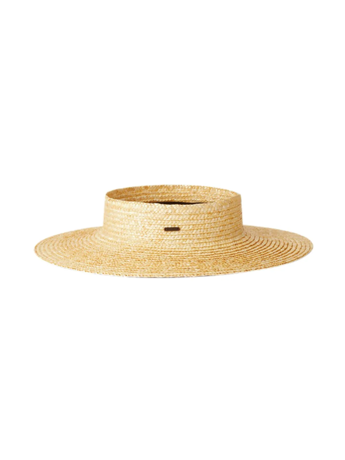 Pet detail: Rechte klep; Design: Gevoerde zoom/rand; Motief: Effen; Materiaal: Stro materiaal; Captype: Zonneklep; Extra's: Gevlochten structuur, Label plaatje, Op staal naden