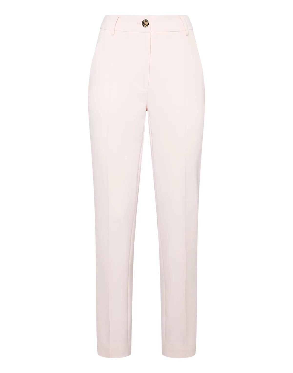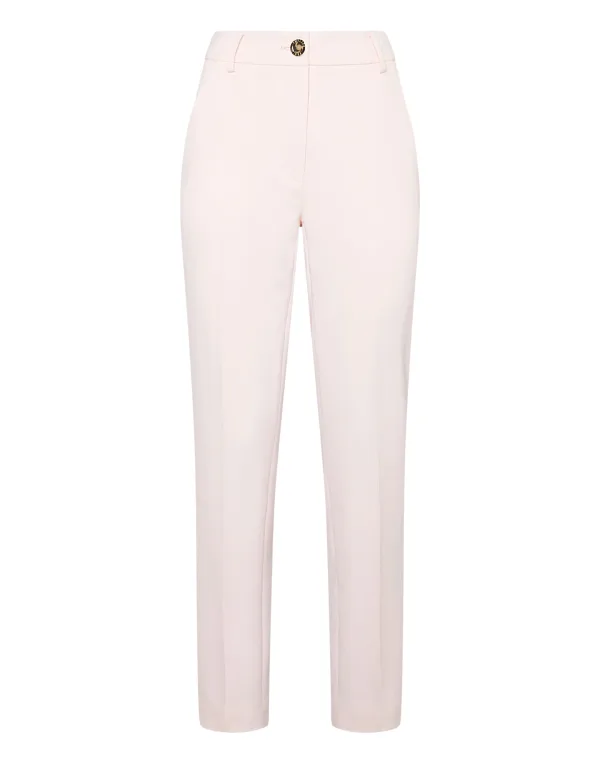 Een tip voor je kantooroutfit. Deze nauwsluitende Capri-broek van viscose-katoen. De hoge taille en de enkele sierknoop zijn slechts enkele van de stijlvolle details. Twee steekzakken aan de voorkant en één aan de achterkant.