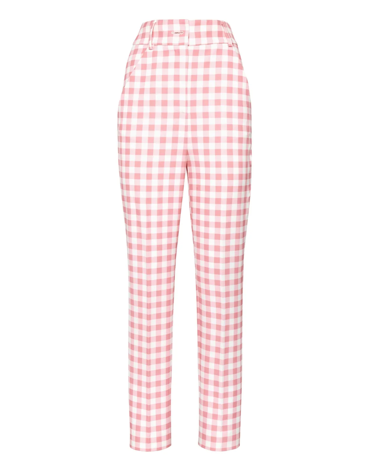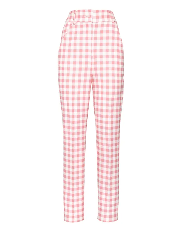 Iets klassieks, maar niet te veel? Deze geruite katoenen capribroek van Vichy is de perfecte oplossing. De hoge taille en de juweelknoop zijn slechts enkele van de stijlvolle details. Steekzakken voor en achter.