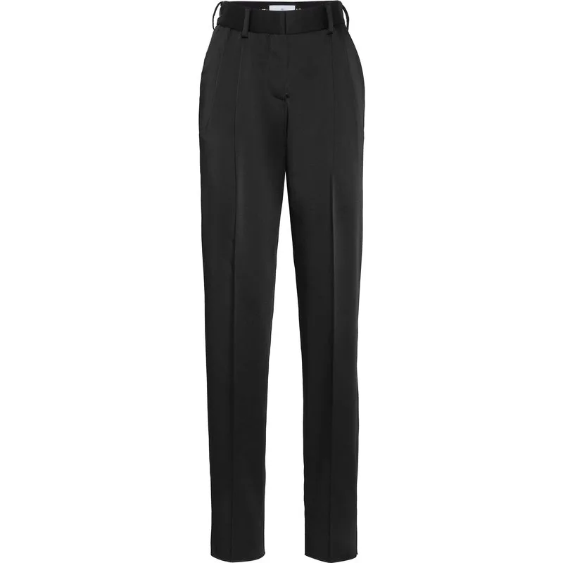 The elegance of office trousers is indisputable. See this model designed for the new season. Stretch satin Waistband with lined single button Two pleats at the waist Slit pockets Logoed metal badge on the back