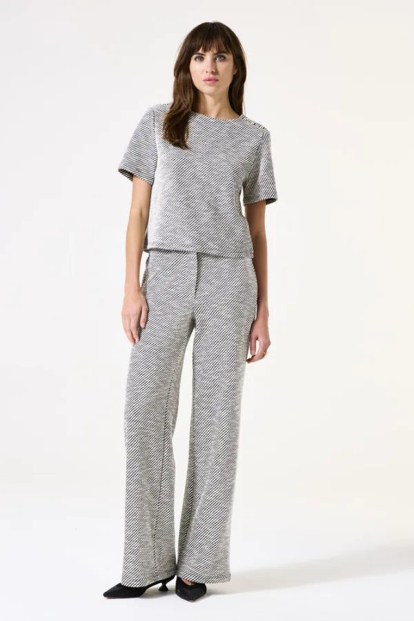 Jaquardgeweven broek met streepdessin. Deze broek heeft een hoge taille, een knoop- en ritssluiting en een wide fit. Dit item is gemaakt van 48% katoen, 45% polyester en 7% metallic garen, wat zorgt voor een luxe uitstraling en comfort.