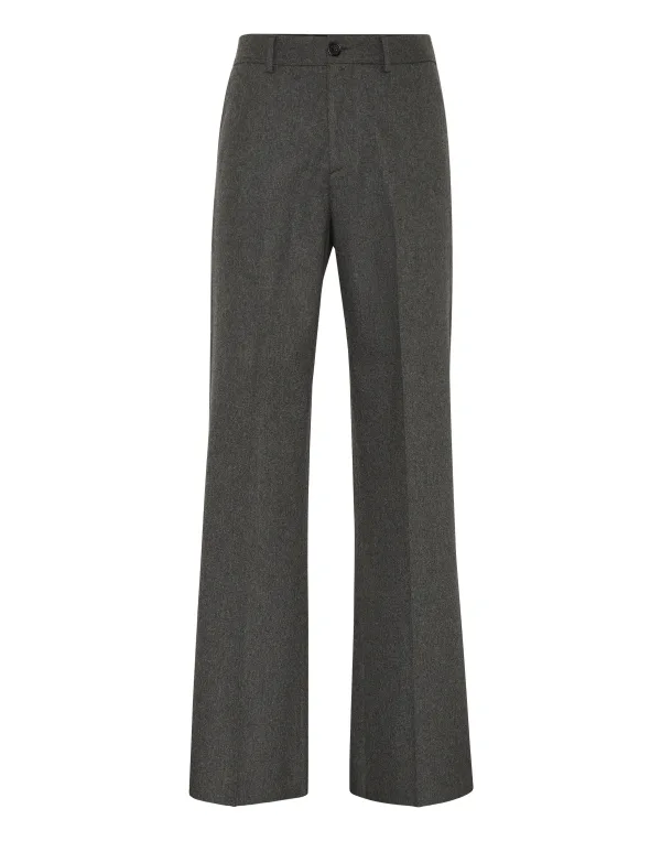 Ontdek de originaliteit van deze wollen broeken. Wolweefsel Sleufzakken Tailleband met knoop Wijde pijpen pasvorm