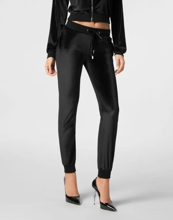 Verfraaid Verhoog je casual stijl met deze chenille joggingbroek, die luxueus comfort combineert met een stoer randje. Perfect om een statement te maken, of u nu loungt of uitgaat. Slanke, taps toelopende pasvorm voor een flatterend silhouet. Zachte chenillestof voor ultiem comfort en een pluchen gevoel. Strass doodshoofddetail voegt een vleugje edgy luxe toe. Trekkoord in de taille voor verstelbaar comfort. Ideaal voor een opvallende casual styling met een vleugje attitude.