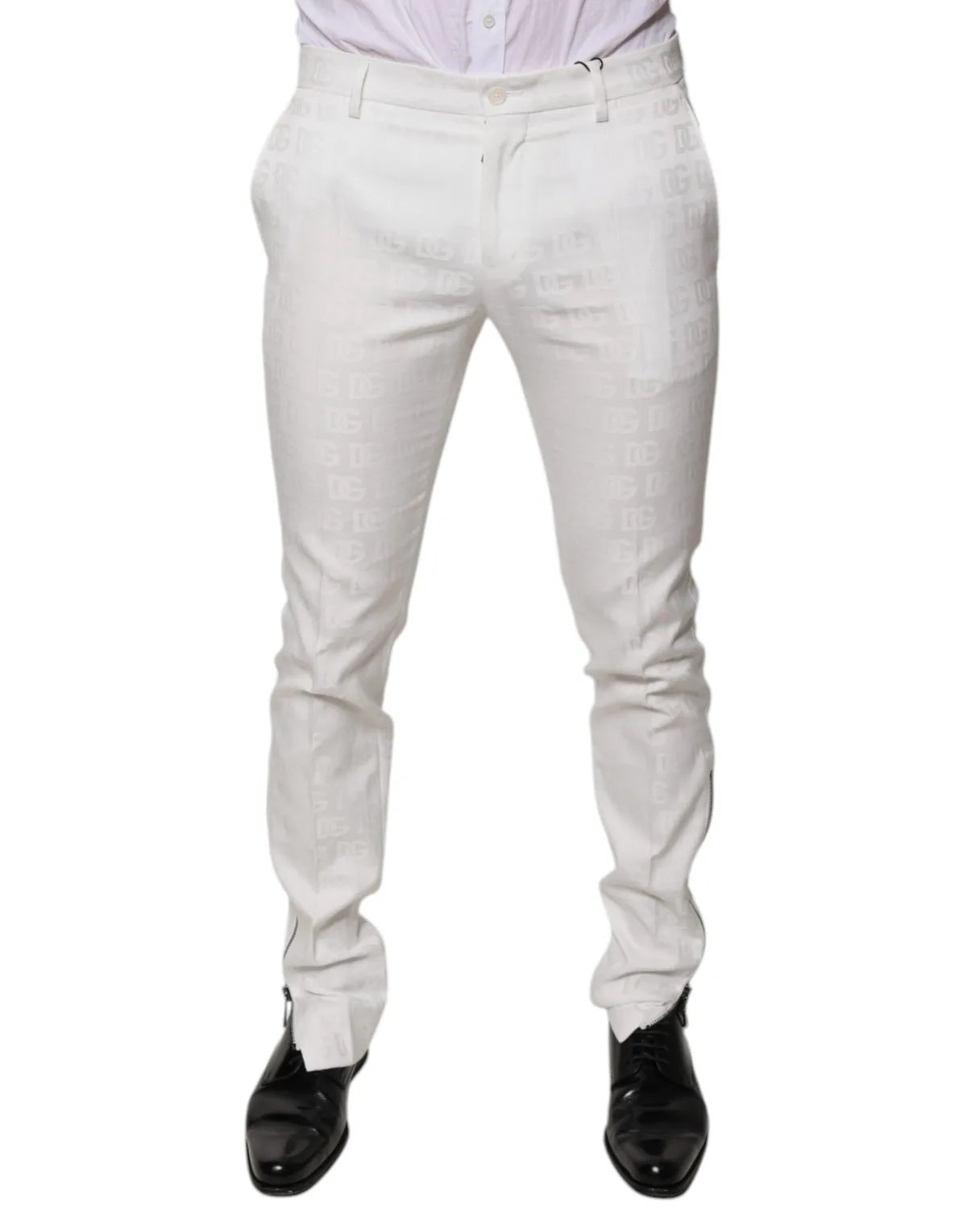 Stijlvol de deur uit gaan, aandacht trekken en het verschil voelen. Deze Dolce & Gabbana broeken bieden ongeëvenaarde verfijning en comfort. Ervaar de luxe van premium katoen, dat zorgt voor ademend vermogen en een zachte aanraking op je huid. Het slim fit ontwerp biedt een moderne silhouet, perfect om je scherpe stijl te tonen. Het reliëf logo-patroon voegt een vleugje exclusiviteit toe. Geniet van veelzijdige styling, eenvoudig over te schakelen van dag naar nacht. Met hun duurzame constructie zijn deze broeken gemaakt om lang mee te gaan. Verhoog je garderobe met een vleugje Italiaans ambacht.