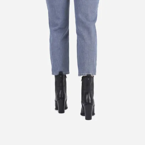 Deze enkellaars voor dames van BRONX heeft een normale pasvorm en heeft een bovenwerk van leer. Het instapmodel is voorzien van een blokhak. De enkellaars heeft een voering van leer.