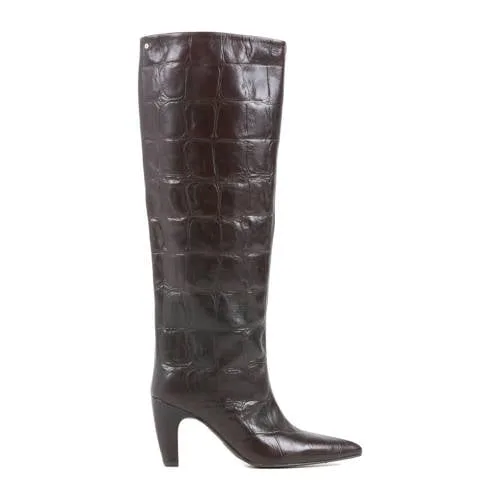 BRONX Low-jadey leren hoge laarzen met crocoprint donkerbruin Prijzen