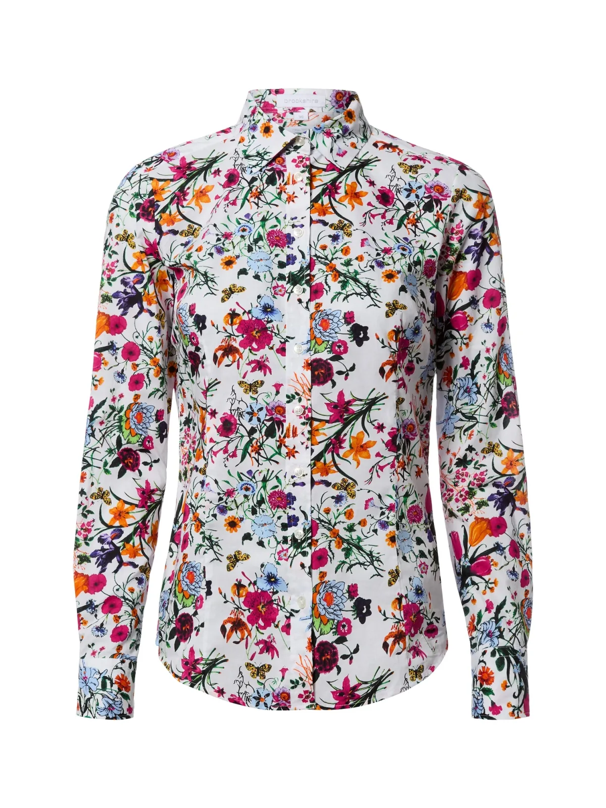 Blouse type: Klassieke blouse; Design: Gevoerde zoom/rand; Type sluiting: Knoopsluiting; Materiaal: Katoen; Motief: Bloemenprint; Kraag: Kentkraag; Details: Plooien; Extra's: All-over patroon, Label patch/label flag; Pasvorm: Normale pasvorm; Armlengte: Lange mouw; Lengte: Normale lengte
