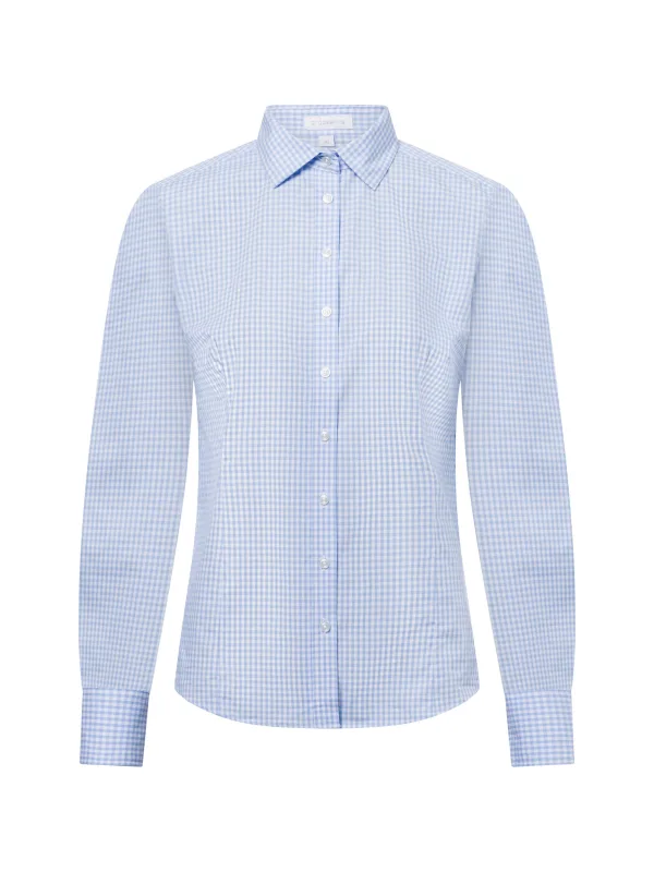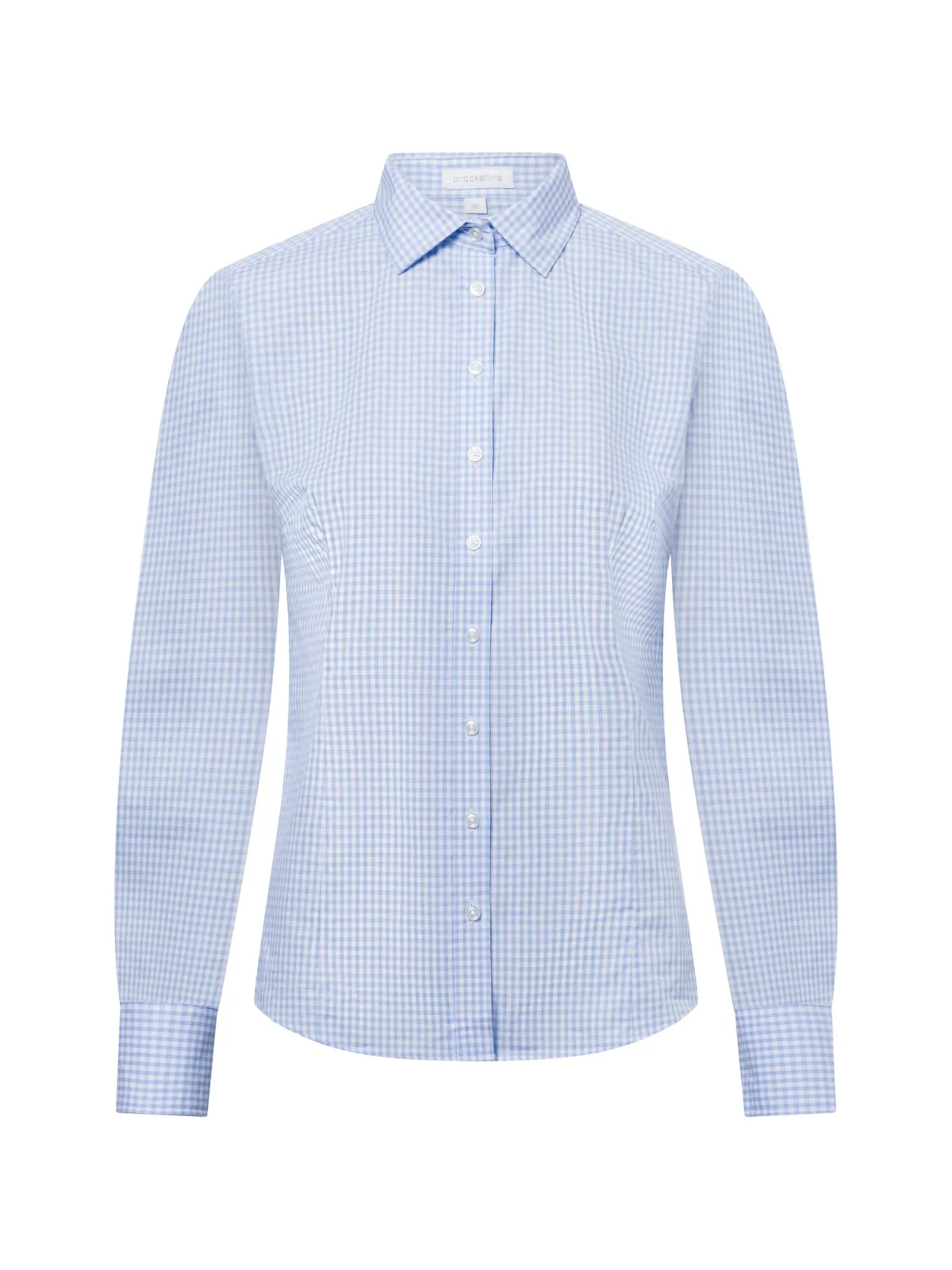 Blouse type: Klassieke blouse; Design: Gevoerde zoom/rand; Type sluiting: Knoopsluiting; Materiaal: Katoen; Motief: Geruit; Kraag: Kentkraag; Details: Plooien; Extra's: All-over patroon; Pasvorm: Normale pasvorm; Armlengte: Lange mouw; Lengte: Normale lengte