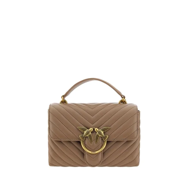 Kalfshuiden Love Lady Mini Handtas van Pinko, voorkant met magnetische flapsluiting, iconisch verguld Love Birds-logo geperst aan de voorkant, gewatteerd en gestoffeerd ontwerp, dubbele binnenruimte, afneembare ketting schouderriem met een soepele leren inzet, platte stevige handgreep, binnenin platte zak met rits, iconische tone-on-tone geborduurde merkteken op de achterkant. Seizoen: AW25 Afmetingen: 26x26x7 Samenstelling: 100% Kalfshuid Bos Taurus