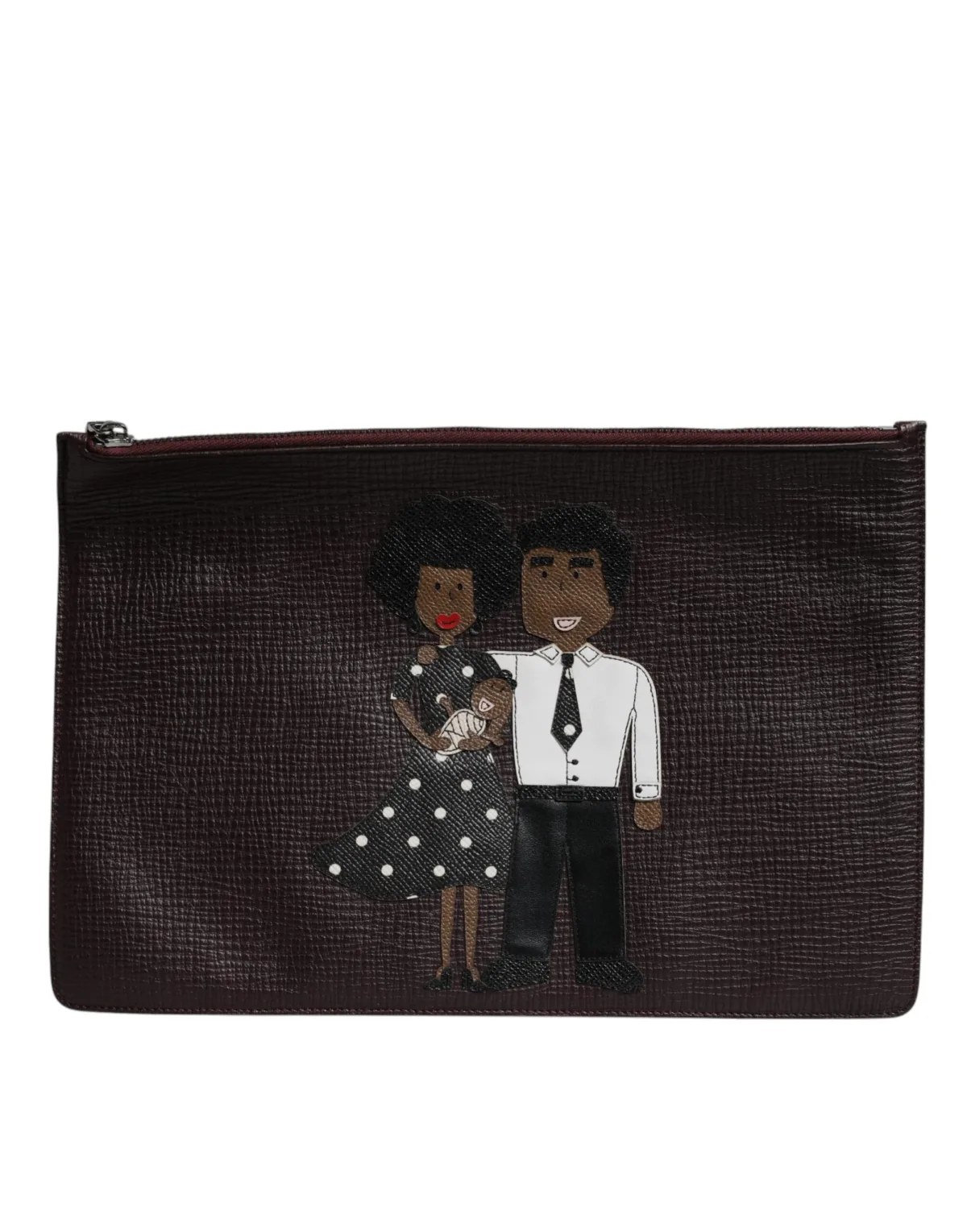 Bruine Leren #DGFAMILY Versierde Mannen Clutch Pouch Tas