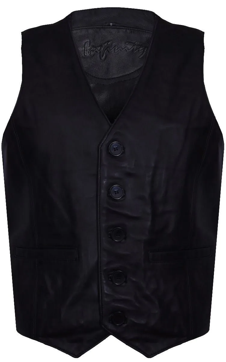 Een eenvoudig maar prachtig ontworpen gilet gemaakt van boterzacht nappaleer. Dit kledingstuk heeft een V-hals die wordt aangevuld met een sluiting met 5 knopen aan de voorkant. Voor extra functionaliteit is deze voorzien van twee taillehoge zakken en een riem aan de achterkant voor een meer persoonlijke pasvorm. Dit gilet is perfect voor nette of casual kleding en is verkrijgbaar in andere kleuren.