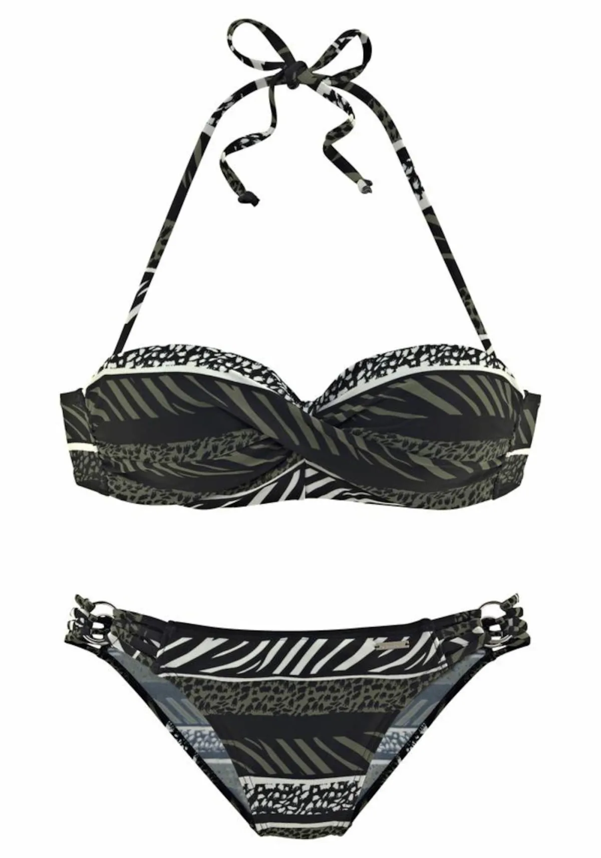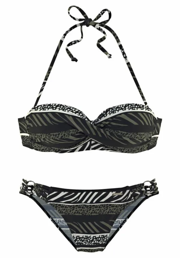 Cup soorten: Full cup bh, Uitneembare cups; Soort bandjes: Halterbandjes; Bh/bikini type: Bandeau; Beugel: Met beugel; Motief: Dierenprint; Details: Wikkel design; Extra's: Verwijderbare bandjes, Uitneembare cups