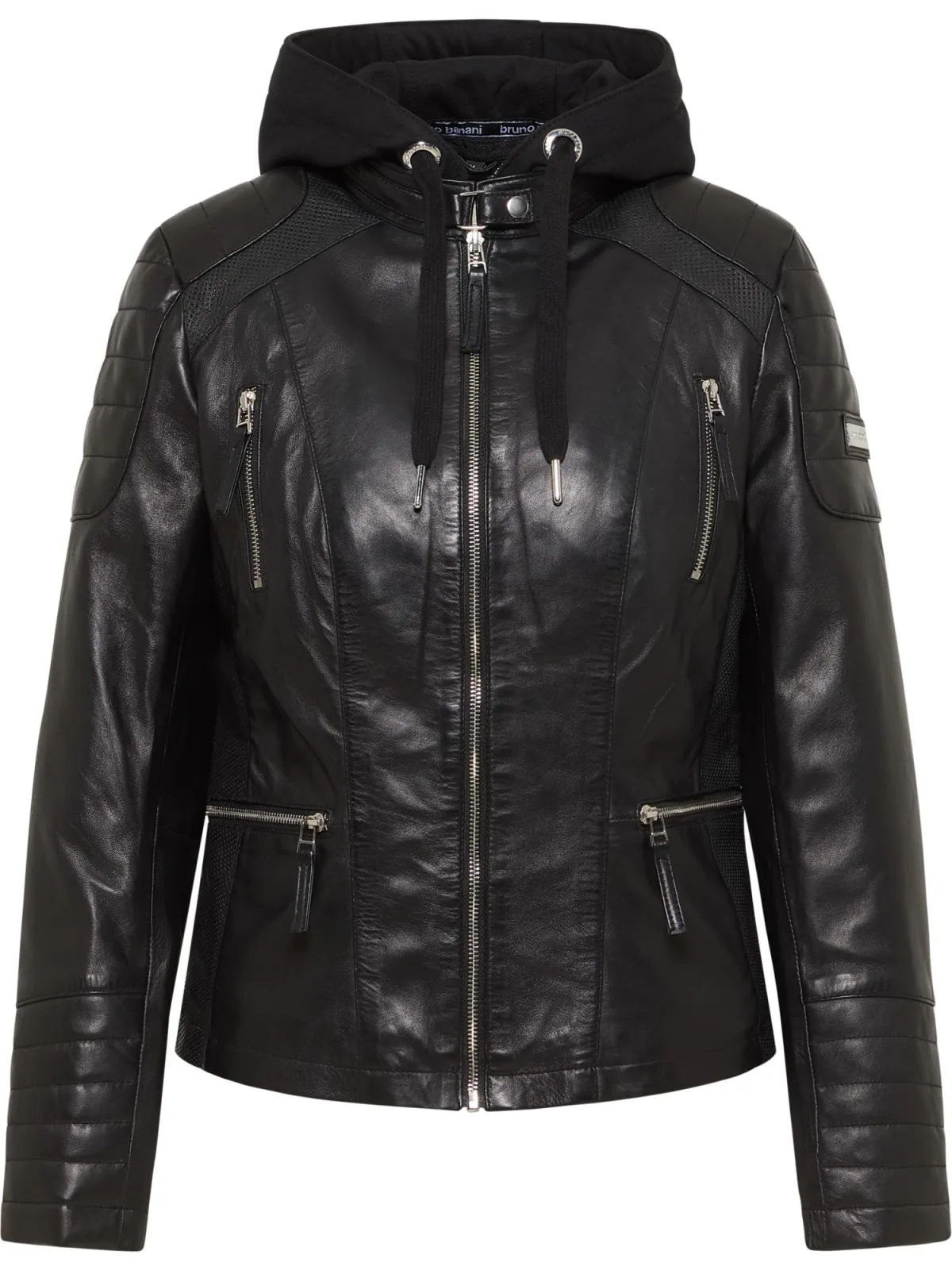 Design: Met capuchon; Type sluiting: Ritssluiting; Voering: Licht gevoerd; Materiaal: Leer; Motief: Effen; Extra's: Op staal naden; Pasvorm: Normale pasvorm