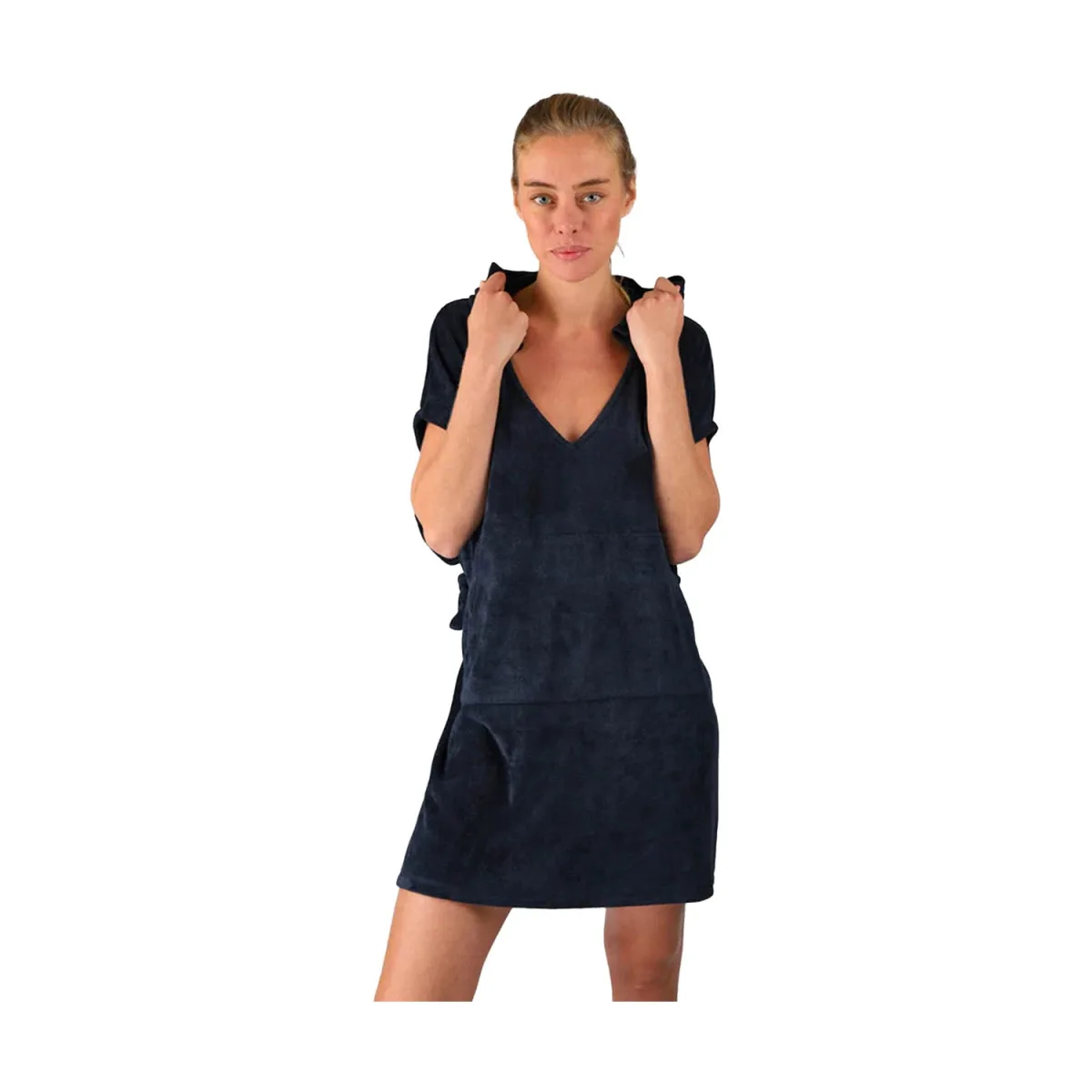 De Paige Poncho voor dames brengt elegantie naar je strand- of zwembadlook. Met een diepe V-hals en een oversized capuchon biedt het een ontspannen maar toch chique silhouet. De open zijkanten, vastgemaakt met modieuze koorden, voegen een unieke touch toe en zorgen voor bewegingsvrijheid en comfort. Perfect om over je badkleding te dragen, de Paige Poncho is zowel praktisch als stijlvol, waardoor het een must-have is voor zonnige dagen en winderige avonden.
