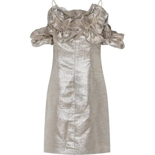 Bruuns Bazaar off shoulder jurk zilver