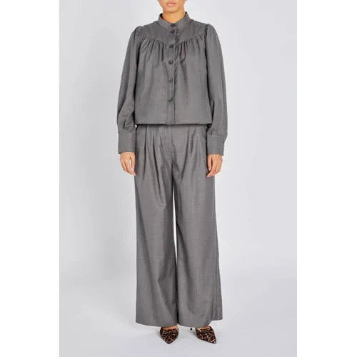 Bruuns Bazaar wide leg regular waist broek grijs
