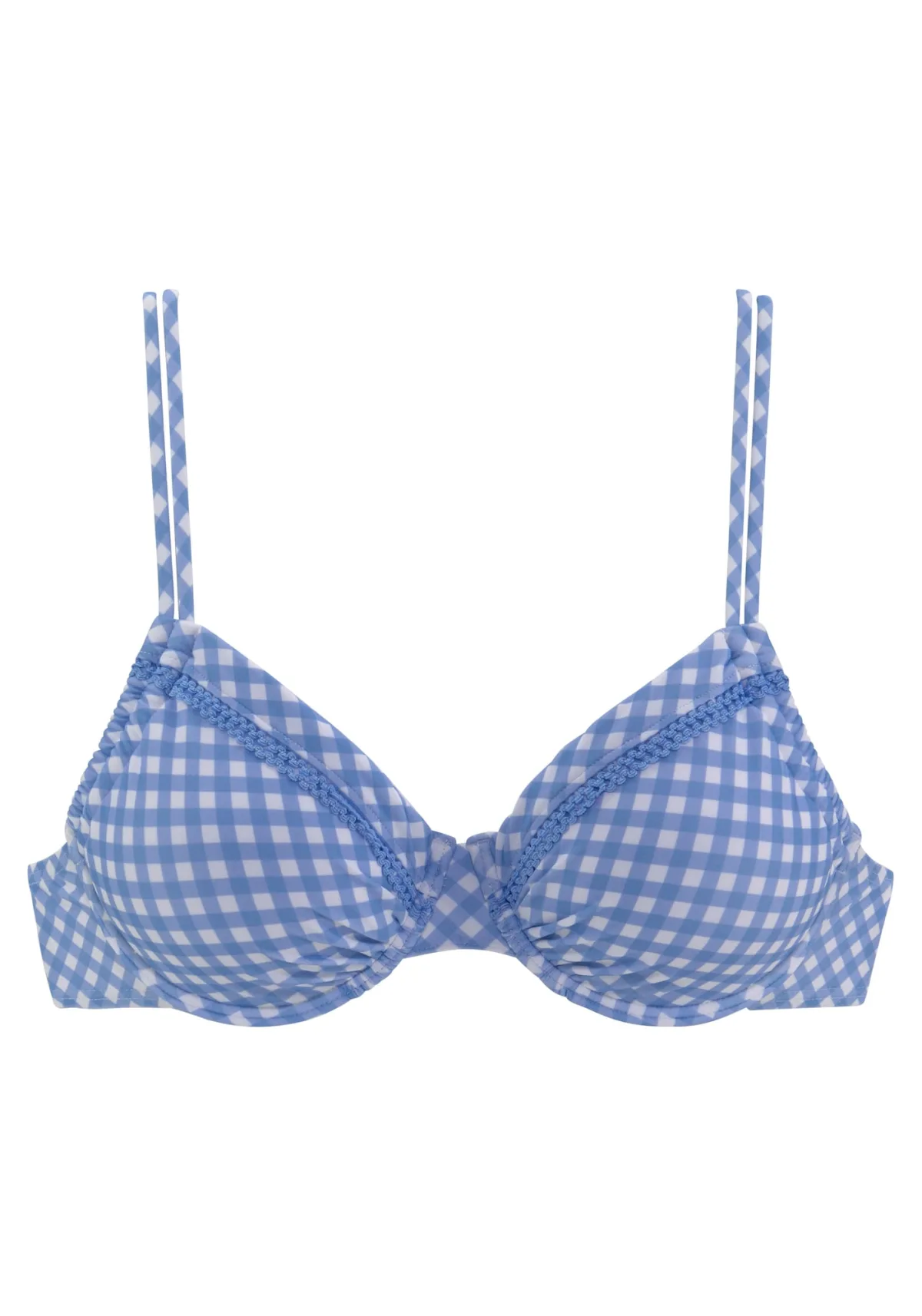 Cup soorten: Soft cup bh, Uitneembare cups; Bh/bikini type: T-shirt; Beugel: Met beugel; Design: Gevoerde zoom/rand; Motief: Geruit; Details: Gedrapeerd; Extra's: Verstelbare bandjes, All-over patroon, Applicaties, Uitneembare cups